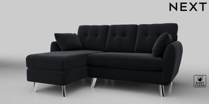 6.12.1 Buy Wilson Buttoned Back Small Sofa Chaise - Left Hand Plush Velvet Easy Clean Charcoal Grey Metal Tapered - Chrome from the Next UK online shop Click here to use our accessible website