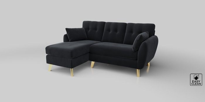 6.12.1 Buy Wilson Buttoned Back Small Sofa Chaise - Left Hand Plush Velvet Easy Clean Charcoal Grey Metal Tapered - Gold from the Next UK online shop Click here to use our accessible website