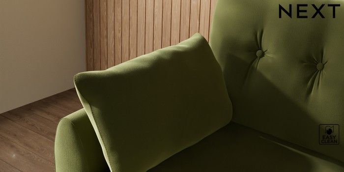 7.3.1 Buy Wilson Buttoned Back Small Sofa Chaise - Left Hand Plush Velvet Easy Clean Mid Olive Green Metal Tapered - Gold from the Next UK online shop Click here to use our accessible website