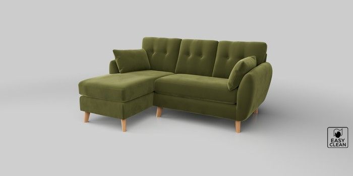 6.12.1 Buy Wilson Buttoned Back Small Sofa Chaise - Left Hand Plush Velvet Easy Clean Mid Olive Green Retro Tapered - Light from the Next UK online shop Click here to use our accessible website