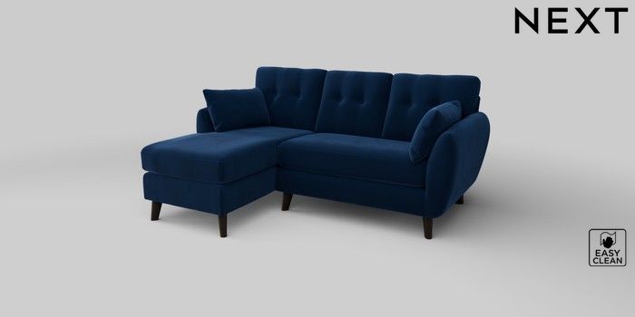 6.12.1 Buy Wilson Buttoned Back Small Sofa Chaise - Left Hand Plush Velvet Easy Clean Navy Blue Retro Tapered - Dark from the Next UK online shop Click here to use our accessible website