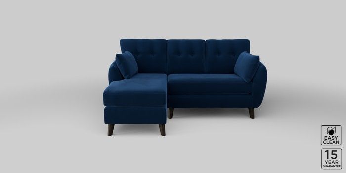 6.11.4 Buy Wilson Buttoned Back Small Sofa Chaise - Left Hand Plush Velvet Easy Clean Navy Blue Retro Tapered - Dark from the Next UK online shop Click here to use our accessible website