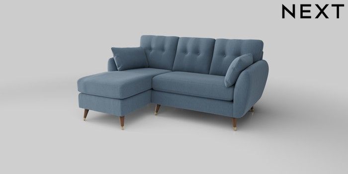 6.12.1 Buy Wilson Buttoned Back Small Sofa Chaise - Left Hand Relaxed Linen Look Mid Blue Low Retro Tapered Metal Cap - Mid from the Next UK online shop Click here to use our accessible website