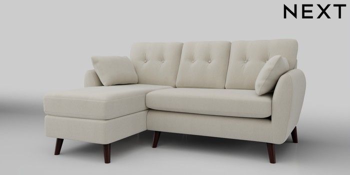 6.12.1 Buy Wilson Buttoned Back Small Sofa Chaise - Left Hand Relaxed Linen Look Oyster Retro Tapered - Dark Brown from the Next UK online shop Click here to use our accessible website
