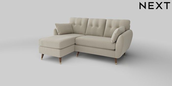 6.12.1 Buy Wilson Buttoned Back Small Sofa Chaise - Left Hand Ripple Chenille Light Natural Low Retro Tapered Metal Cap - Mid from the Next UK online shop Click here to use our accessible website
