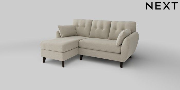 6.12.1 Buy Wilson Buttoned Back Small Sofa Chaise - Left Hand Ripple Chenille Light Natural Retro Tapered - Dark from the Next UK online shop Click here to use our accessible website