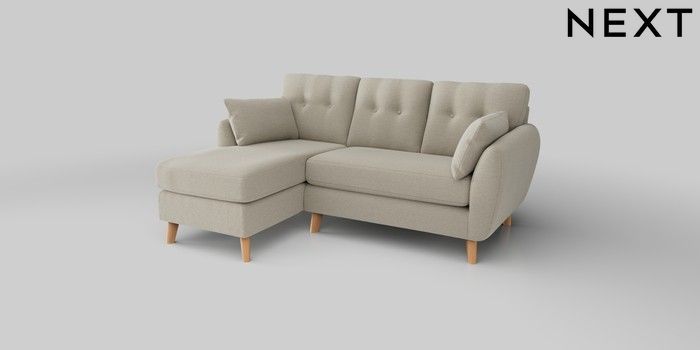 6.12.1 Buy Wilson Buttoned Back Small Sofa Chaise - Left Hand Ripple Chenille Light Natural Retro Tapered - Light from the Next UK online shop Click here to use our accessible website