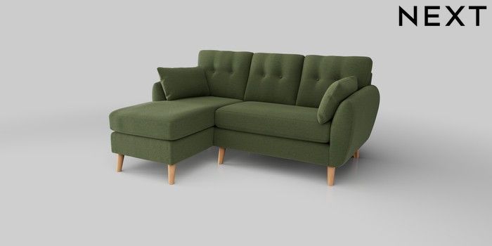 6.12.1 Buy Wilson Buttoned Back Small Sofa Chaise - Left Hand Ripple Chenille Mid Moss Green Retro Tapered - Light from the Next UK online shop Click here to use our accessible website