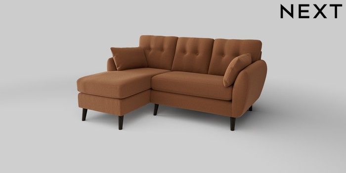6.12.1 Buy Wilson Buttoned Back Small Sofa Chaise - Left Hand Ripple Chenille Mid Rust Brown Retro Tapered - Dark from the Next UK online shop Click here to use our accessible website