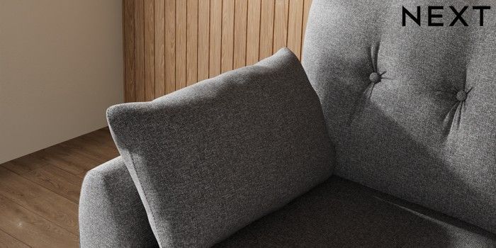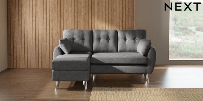 7.3.1 Buy Wilson Buttoned Back Small Sofa Chaise - Left Hand Studio Chenille Mid Grey Metal Tapered - Chrome from the Next UK online shop