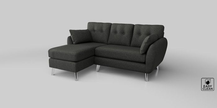 6.12.1 Buy Wilson Buttoned Back Small Sofa Chaise - Left Hand Tweedy Blend Easy Clean Charcoal Grey Metal Tapered - Chrome from the Next UK online shop Click here to use our accessible website