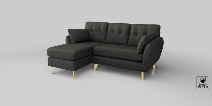 6.12.1 Buy Wilson Buttoned Back Small Sofa Chaise - Left Hand Tweedy Blend Easy Clean Charcoal Grey Metal Tapered - Gold from the Next UK online shop Click here to use our accessible website