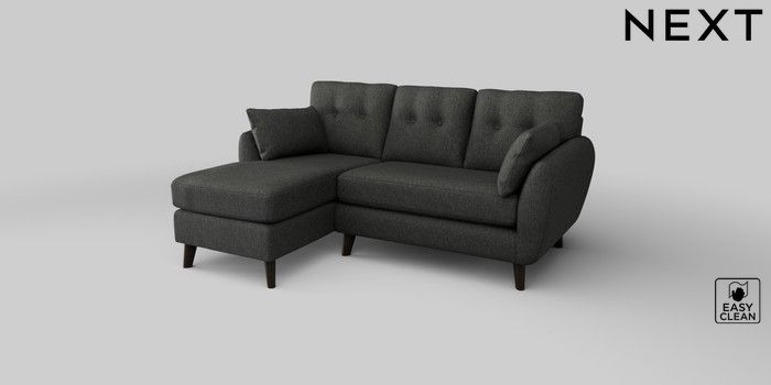 6.12.1 Buy Wilson Buttoned Back Small Sofa Chaise - Left Hand Tweedy Blend Easy Clean Charcoal Grey Retro Tapered - Dark from the Next UK online shop Click here to use our accessible website