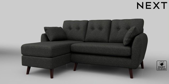 6.12.1 Buy Wilson Buttoned Back Small Sofa Chaise - Left Hand Tweedy Blend Easy Clean Charcoal Grey Retro Tapered - Dark Brown from the Next UK online shop Click here to use our accessible website