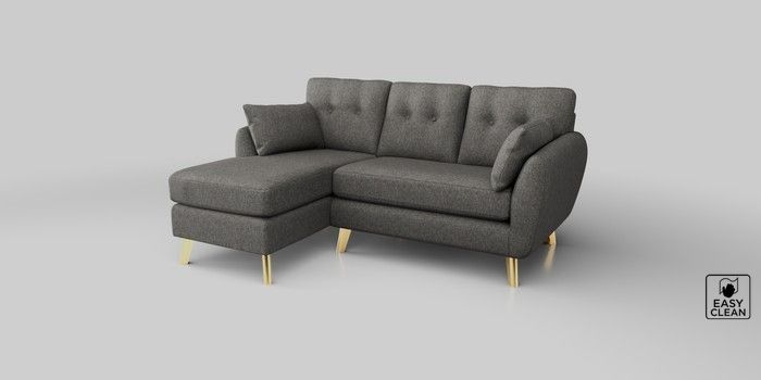 6.12.1 Buy Wilson Buttoned Back Small Sofa Chaise - Left Hand Tweedy Blend Easy Clean Dark Grey Metal Tapered - Gold from the Next UK online shop Click here to use our accessible website