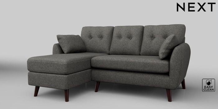 6.12.1 Buy Wilson Buttoned Back Small Sofa Chaise - Left Hand Tweedy Blend Easy Clean Dark Grey Retro Tapered - Dark Brown from the Next UK online shop Click here to use our accessible website