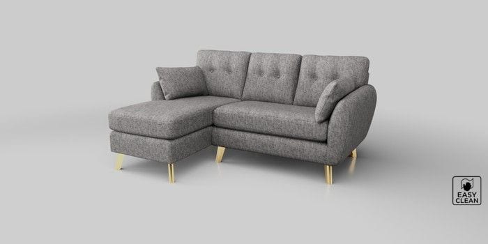 6.12.1 Buy Wilson Buttoned Back Small Sofa Chaise - Left Hand Chunky Boucle Easy Clean Light Grey Metal Tapered - Gold from the Next UK online shop Click here to use our accessible website