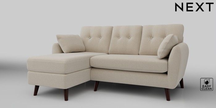 6.12.1 Buy Wilson Buttoned Back Small Sofa Chaise - Left Hand Tweedy Blend Easy Clean Oyster Retro Tapered - Dark Brown from the Next UK online shop Click here to use our accessible website