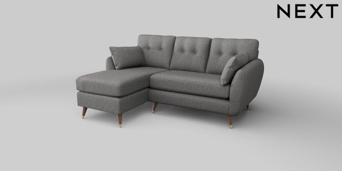 6.12.1 Buy Wilson Buttoned Back Small Sofa Chaise - Left Hand Tweedy Chenille Dark Grey Low Retro Tapered Metal Cap - Mid from the Next UK online shop Click here to use our accessible website
