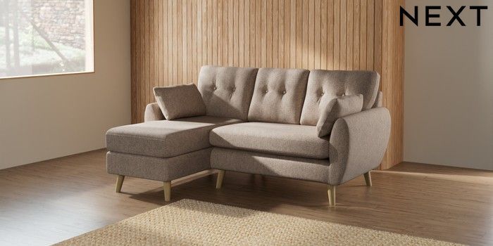 7.2.10 Buy Wilson Buttoned Back Small Sofa Chaise - Left Hand Tweedy Chenille Mid Natural Retro Tapered - Light from the Next UK online shop Click here to use our accessible website