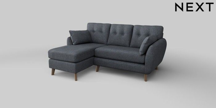 6.12.1 Buy Wilson Buttoned Back Small Sofa Chaise - Left Hand Tweedy Chenille Navy Blue Retro Tapered - Mid from the Next UK online shop Click here to use our accessible website