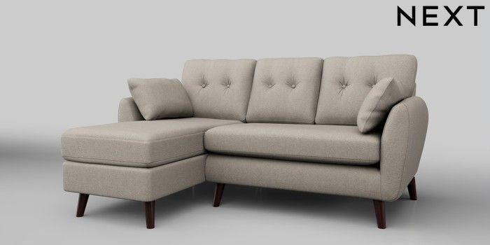 6.12.1 Buy Wilson Buttoned Back Small Sofa Chaise - Left Hand Tweedy Chenille Oyster Retro Tapered - Dark Brown from the Next UK online shop Click here to use our accessible website