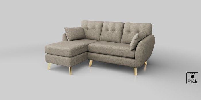 6.12.1 Buy Wilson Buttoned Back Small Sofa Chaise - Left Hand Woven Chenille Easy Clean Mid Natural Metal Tapered - Gold from the Next UK online shop Click here to use our accessible website