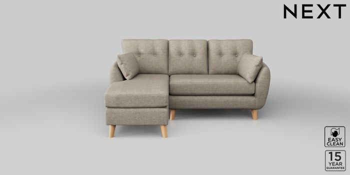 6.11.4 Buy Wilson Buttoned Back Small Sofa Chaise - Left Hand Woven Chenille Easy Clean Mid Natural Retro Tapered - Light from the Next UK online shop Click here to use our accessible website