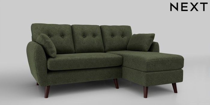 6.12.1 Buy Wilson Buttoned Back Small Sofa Chaise - Right Hand Boucle Chenille Dark Moss Green Retro Tapered - Dark Brown from the Next UK online shop Click here to use our accessible website
