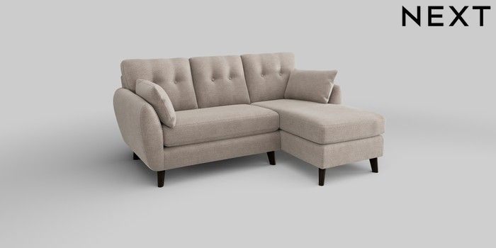 6.12.1 Buy Wilson Buttoned Back Small Sofa Chaise - Right Hand Boucle Chenille Light Natural Retro Tapered - Dark from the Next UK online shop Click here to use our accessible website