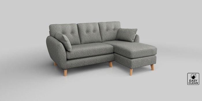 6.12.1 Buy Wilson Buttoned Back Small Sofa Chaise - Right Hand Chunky Boucle Easy Clean Mid Grey Retro Tapered - Light from the Next UK online shop Click here to use our accessible website
