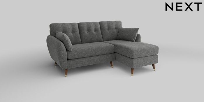 6.12.1 Buy Wilson Buttoned Back Small Sofa Chaise - Right Hand Chunky Chenille Dark Grey Low Retro Tapered Metal Cap - Mid from the Next UK online shop Click here to use our accessible website