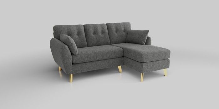 6.12.1 Buy Wilson Buttoned Back Small Sofa Chaise - Right Hand Chunky Chenille Dark Grey Metal Tapered - Gold from the Next UK online shop Click here to use our accessible website