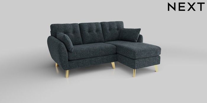 6.12.1 Buy Wilson Buttoned Back Small Sofa Chaise - Right Hand Chunky Chenille Dark Navy Blue Metal Tapered - Gold from the Next UK online shop Click here to use our accessible website