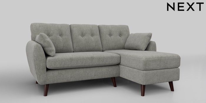 6.12.1 Buy Wilson Buttoned Back Small Sofa Chaise - Right Hand Chunky Chenille Light Grey Retro Tapered - Dark Brown from the Next UK online shop Click here to use our accessible website