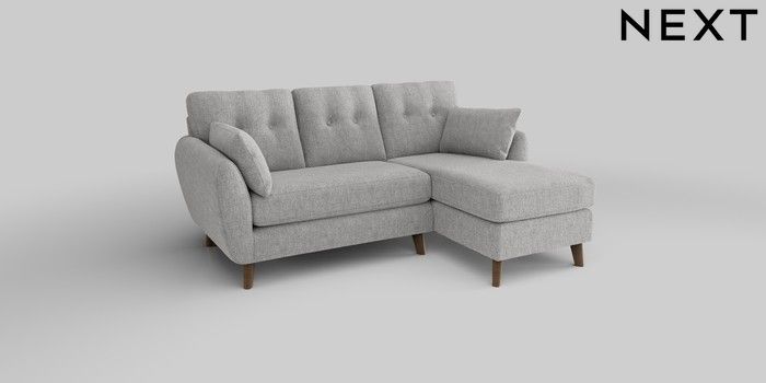 6.12.1 Buy Wilson Buttoned Back Small Sofa Chaise - Right Hand Chunky Chenille Light Grey Retro Tapered - Mid from the Next UK online shop Click here to use our accessible website