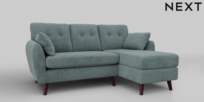 6.12.1 Buy Wilson Buttoned Back Small Sofa Chaise - Right Hand Chunky Chenille Light Teal Green Retro Tapered - Dark Brown from the Next UK online shop Click here to use our accessible website