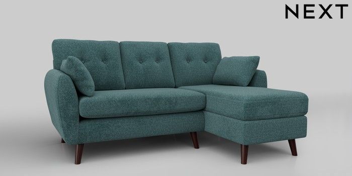 6.12.1 Buy Wilson Buttoned Back Small Sofa Chaise - Right Hand Chunky Chenille Mid Teal Green Retro Tapered - Dark Brown from the Next UK online shop Click here to use our accessible website