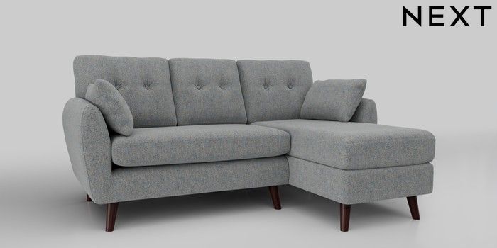 6.12.1 Buy Wilson Buttoned Back Small Sofa Chaise - Right Hand Chunky Marl Mid Grey Retro Tapered - Dark Brown from the Next UK online shop Click here to use our accessible website