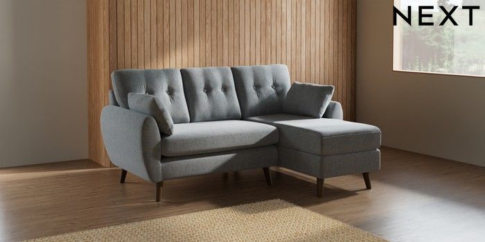 7.2.10 Buy Wilson Buttoned Back Small Sofa Chaise - Right Hand Chunky Marl Mid Grey Retro Tapered - Mid from the Next UK online shop Click here to use our accessible website