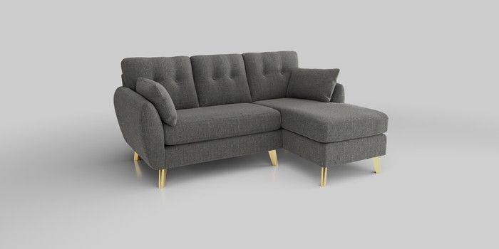 6.12.1 Buy Wilson Buttoned Back Small Sofa Chaise - Right Hand Chunky Texture Dark Grey Metal Tapered - Gold from the Next UK online shop Click here to use our accessible website