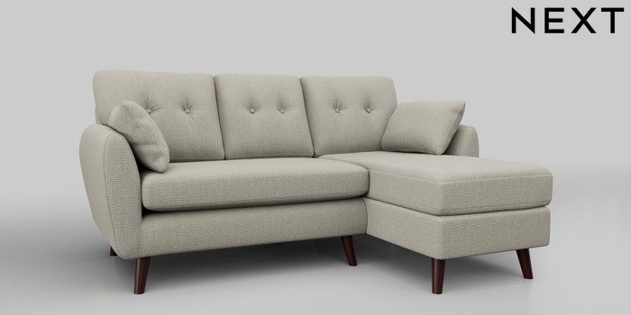 6.12.1 Buy Wilson Buttoned Back Small Sofa Chaise - Right Hand Chunky Texture Oyster Retro Tapered - Dark Brown from the Next UK online shop Click here to use our accessible website