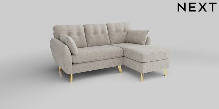 6.12.1 Buy Wilson Buttoned Back Small Sofa Chaise - Right Hand Chunky Weave Dove Grey Metal Tapered - Gold from the Next UK online shop Click here to use our accessible website