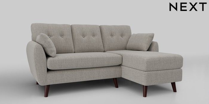 6.12.1 Buy Wilson Buttoned Back Small Sofa Chaise - Right Hand Chunky Weave Dove Grey Retro Tapered - Dark Brown from the Next UK online shop Click here to use our accessible website