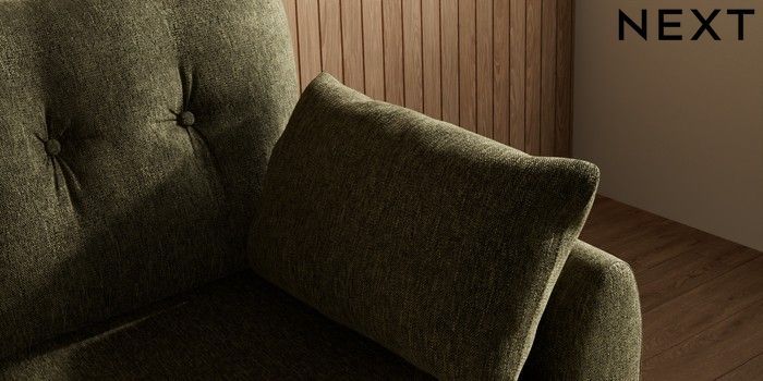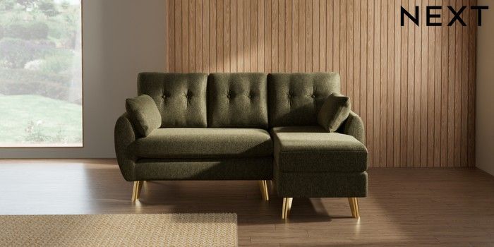 7.3.1 Buy Wilson Buttoned Back Small Sofa Chaise - Right Hand Cotswold Chenille Dark Green Metal Tapered - Gold from the Next UK online shop Click here to use our accessible website