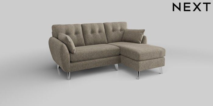 6.12.1 Buy Wilson Buttoned Back Small Sofa Chaise - Right Hand Cotswold Chenille Mid Mink Brown Metal Tapered - Chrome from the Next UK online shop Click here to use our accessible website