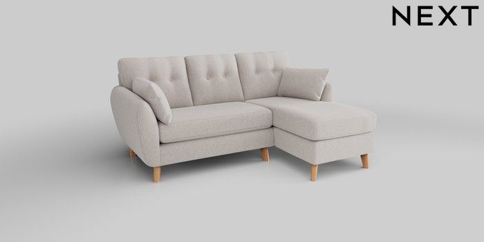 6.12.1 Buy Wilson Buttoned Back Small Sofa Chaise - Right Hand Cotswold Chenille Oyster Retro Tapered - Light from the Next UK online shop Click here to use our accessible website