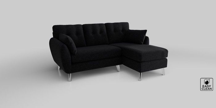 6.12.1 Buy Wilson Buttoned Back Small Sofa Chaise - Right Hand Fine Chenille Easy Clean Black Metal Tapered - Chrome from the Next UK online shop Click here to use our accessible website