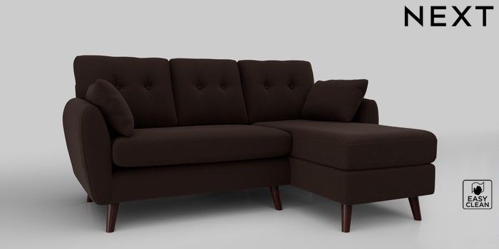 6.12.1 Buy Wilson Buttoned Back Small Sofa Chaise - Right Hand Fine Chenille Easy Clean Chocolate Brown Retro Tapered - Dark Brown from the Next UK online shop Click here to use our accessible website