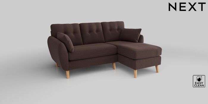 6.12.1 Buy Wilson Buttoned Back Small Sofa Chaise - Right Hand Fine Chenille Easy Clean Chocolate Brown Retro Tapered - Light from the Next UK online shop Click here to use our accessible website